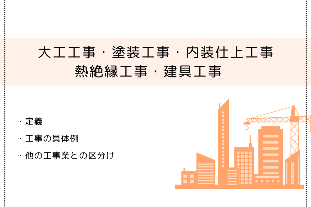 大工工事・塗装工事・内装仕上工事・熱絶縁工事・建具工事の定義と具体例まとめ
