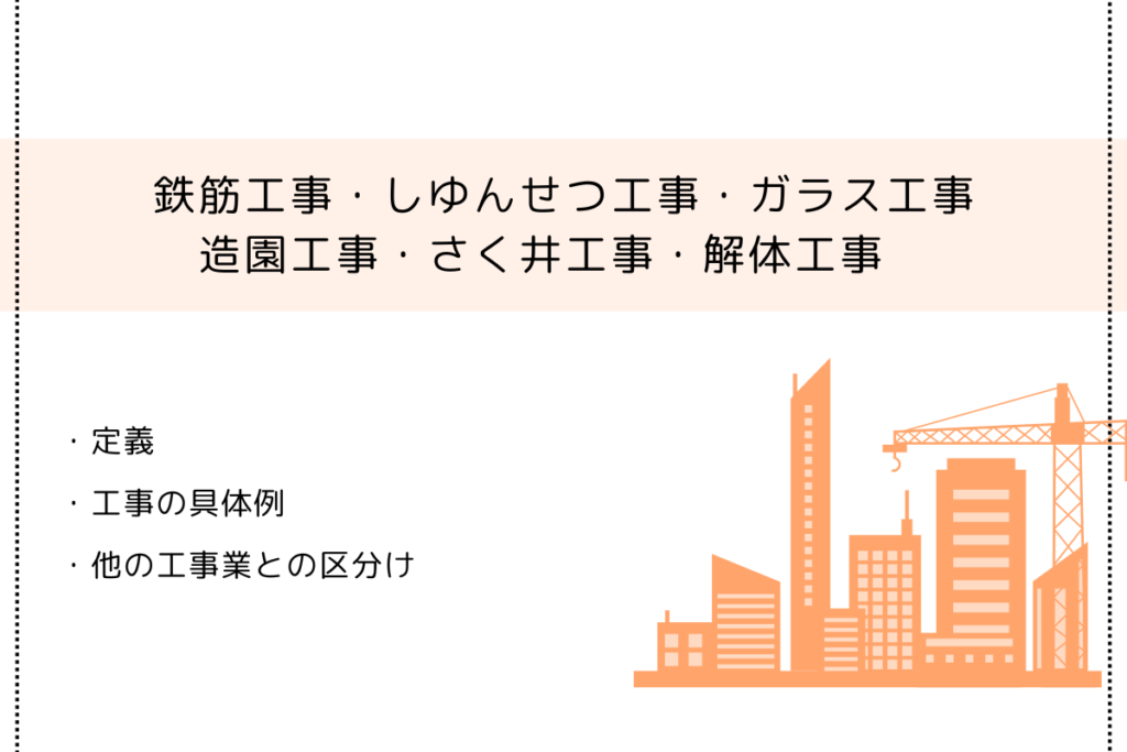鉄筋工事・しゆんせつ工事・ガラス工事・造園工事・さく井工事・解体工事の定義と具体例まとめ