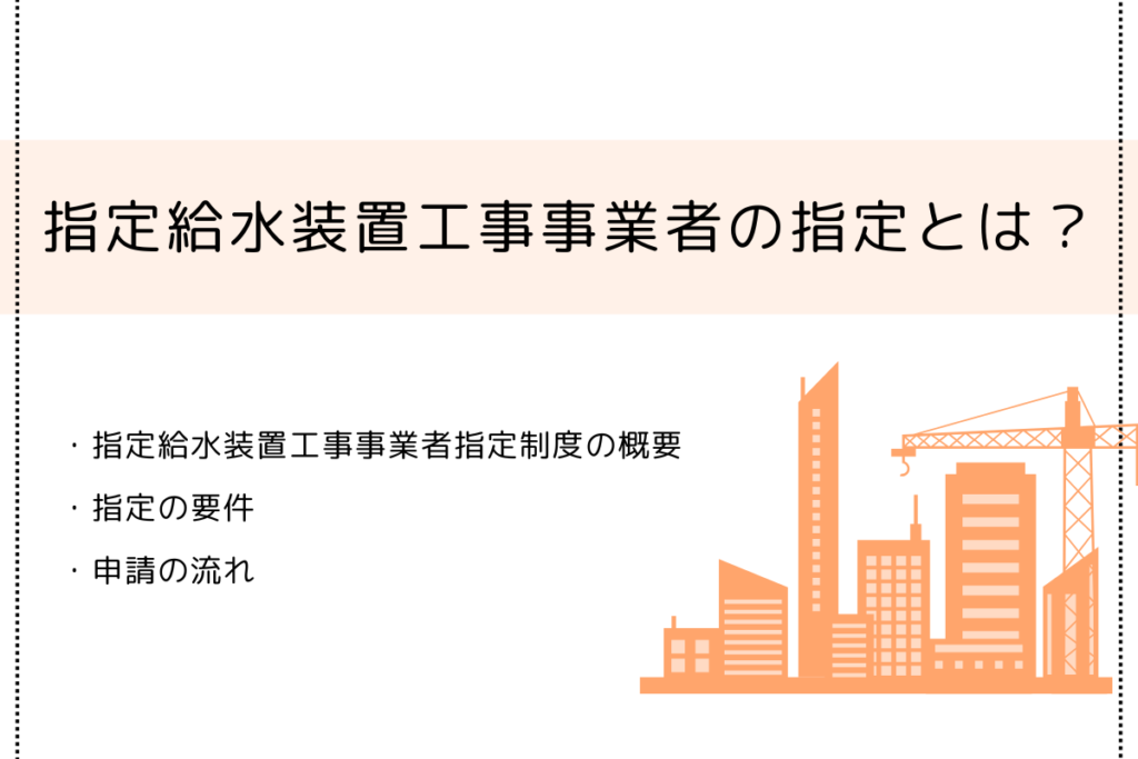 新築住宅などに新規に水道を引き込む場合には公共の上水道の配管に孔をあけ水を引く工事が必要になります。 こうした給水工事は、適正な工事が行われないと水質の異常など利用者の健康に直結する被害が生じる可能性があることから、その安全性を担保するた...